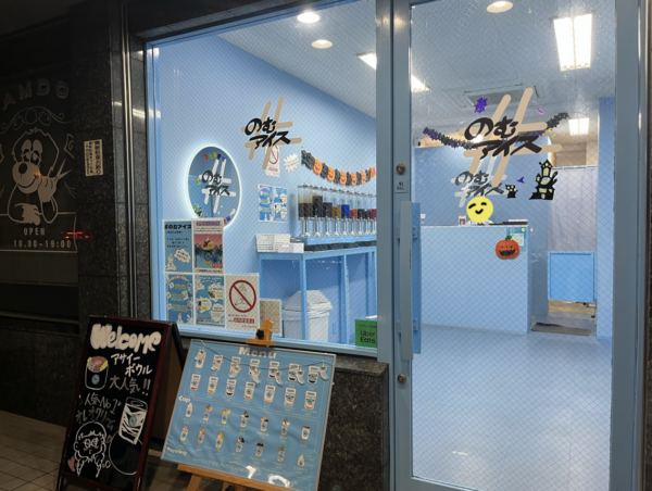 水色の看板と店内がトレードマークの「#のむアイス 広島店」。