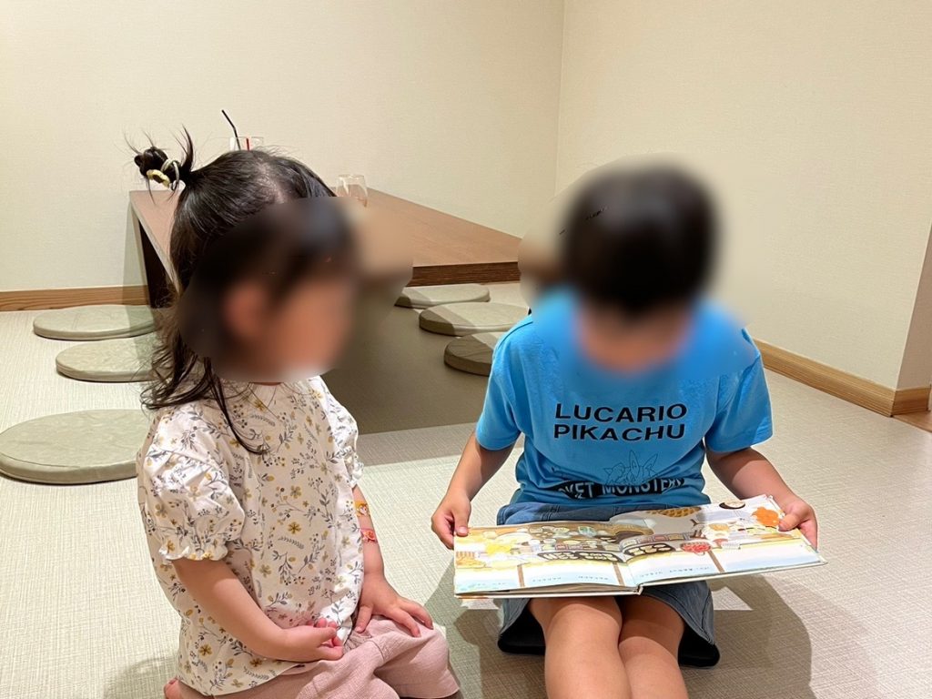 子どもたちは注文を待っている間、絵本を読んだりおもちゃで遊んでいました。