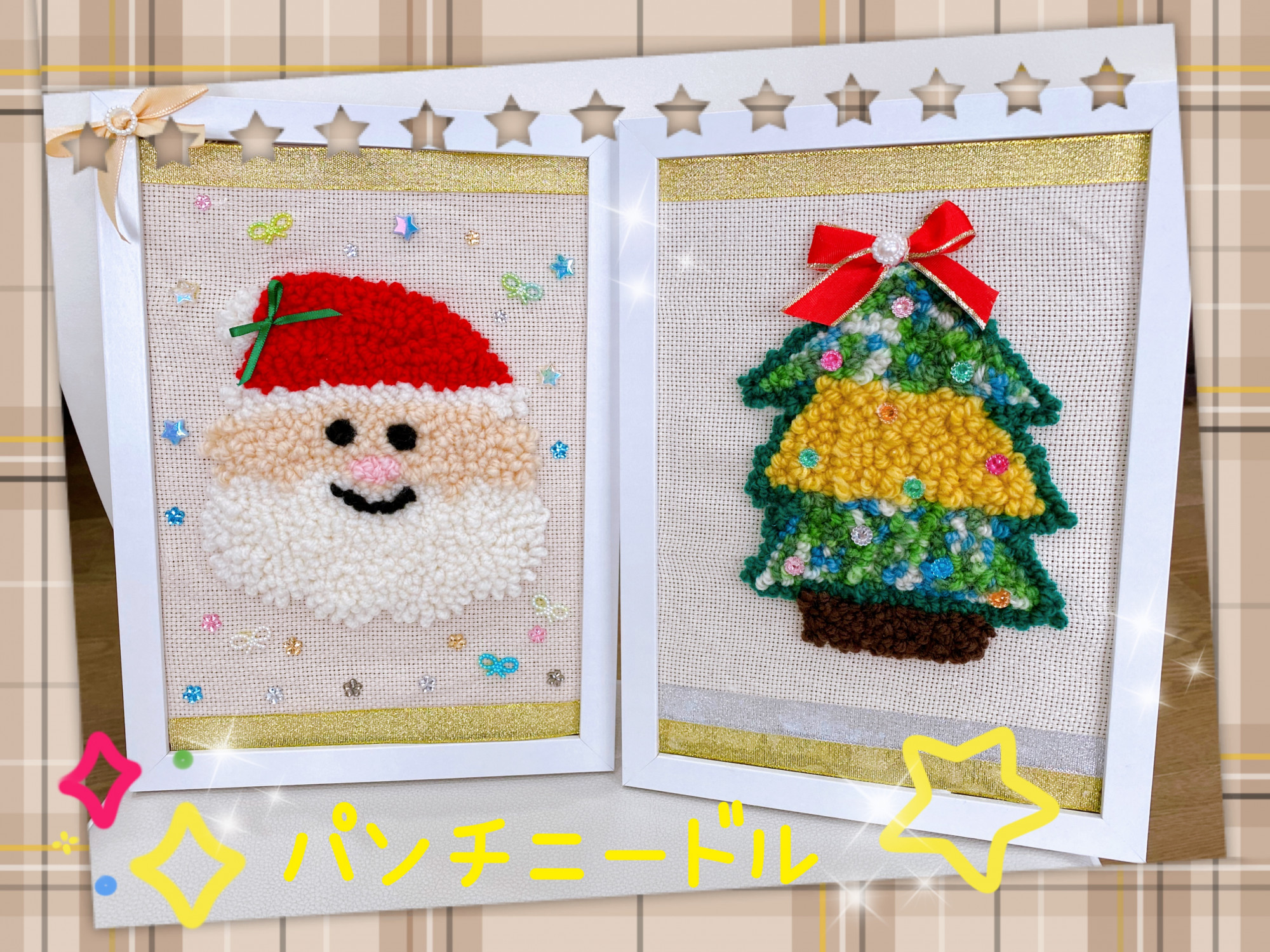 今回は、岩国サロンでパンチニードルをしました。12月も近いので、サンタやツリーのクリスマスバージョンでステッチしていきました♡