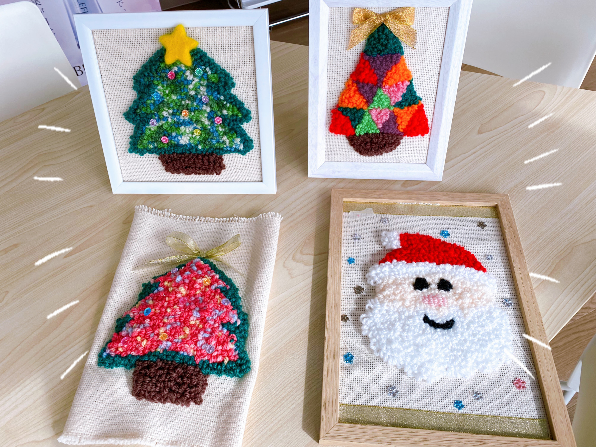 今回、パンチニードルでクリスマスツリーやサンタさんのステッチをしていきました。