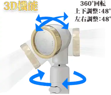 シャワーヘッドの向きを自由自在に動かすことができるので、手持ちでも固定でもお好みの角度で調節できます。