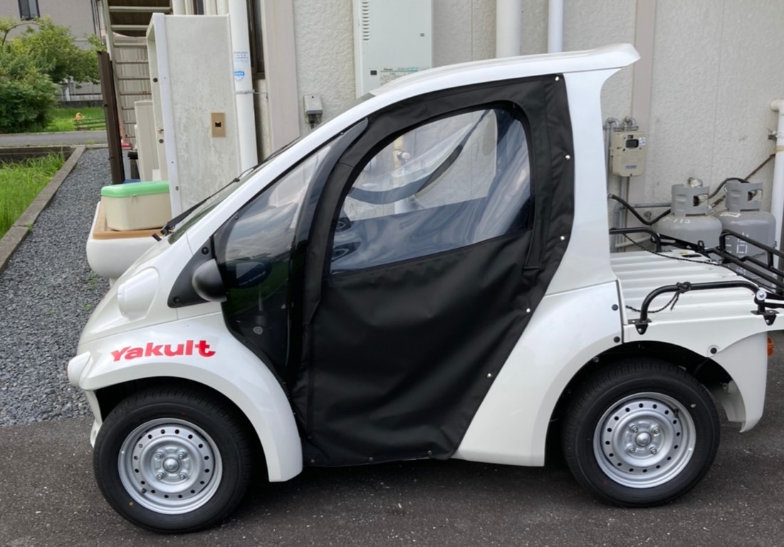 バイクや車でお届けしているヤクルトレディはよく見かけるのではないかと思いますが、《コムス》という電気自動車でお届けしているヤクルトレディもいるんですよ!