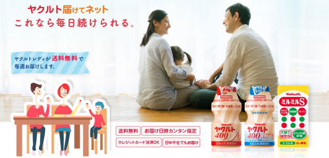 実際、私も毎日職場に来るヤクルトレディに届けてネットを利用して、自分と家族の分のヤクルトを届けてもらっています。