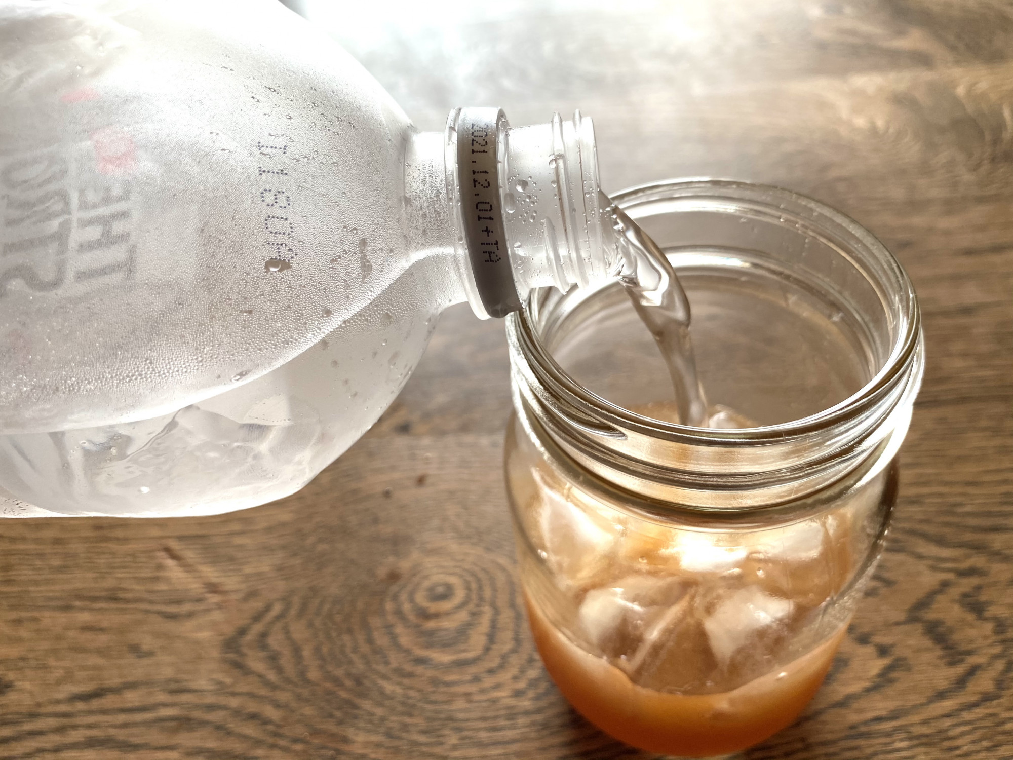 炭酸水で割り、かき混ぜます。そうすると・・・
