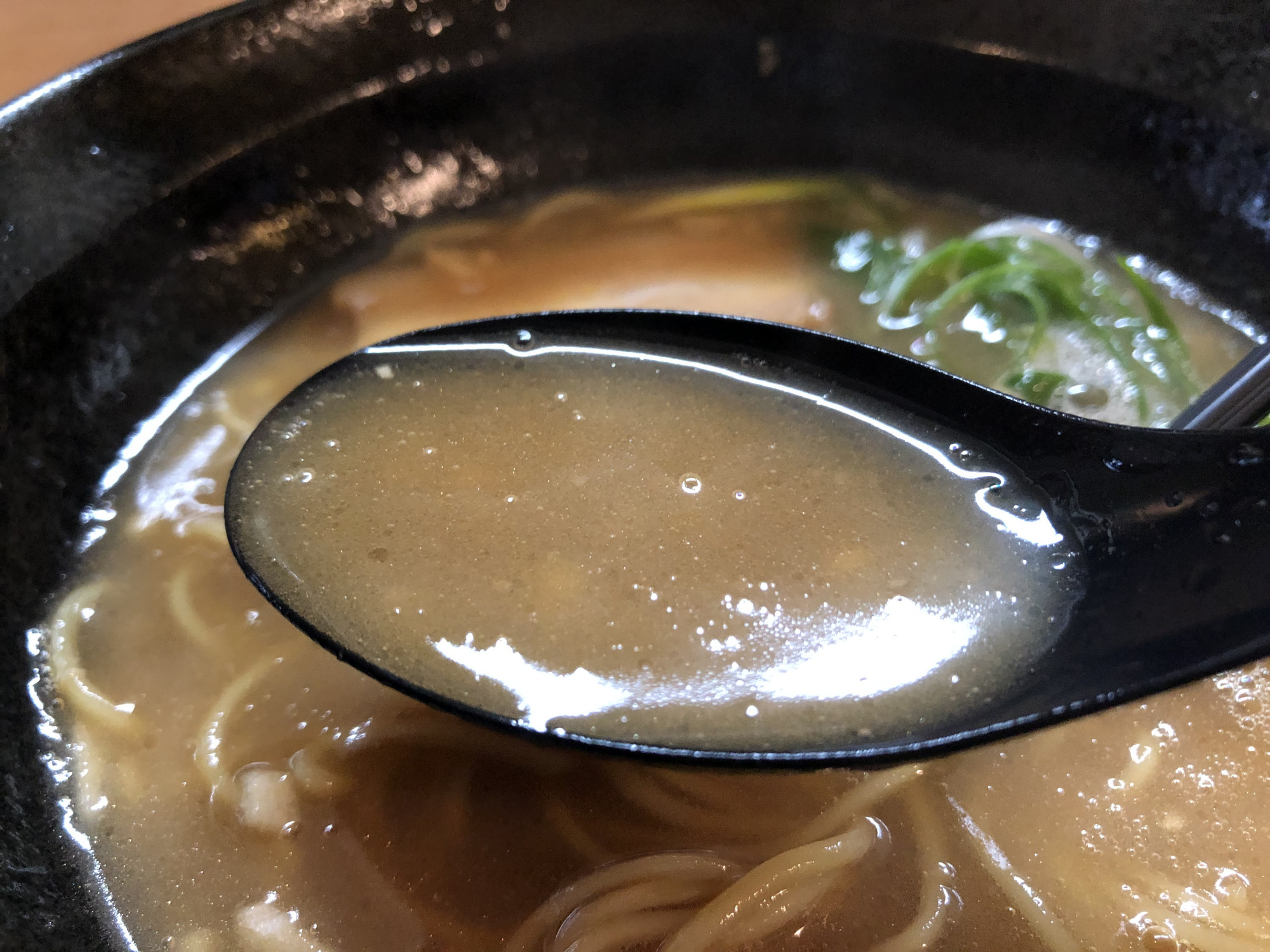スープは、豚骨ベースのとんこつ醤油ですが、見た目ほどこってりはしていないので、気が付くとにんにく入りなのを忘れてスープを飲み干してしまいました(笑)