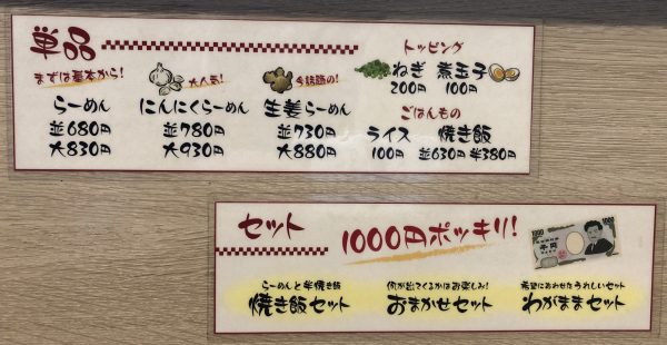 ラーメンの種類は、『らーめん・にんにくらーめん・生姜らーめん』の3種類と決して多くはないですが、そこに店主のラーメンへの”想いとこだわり”を感じます。