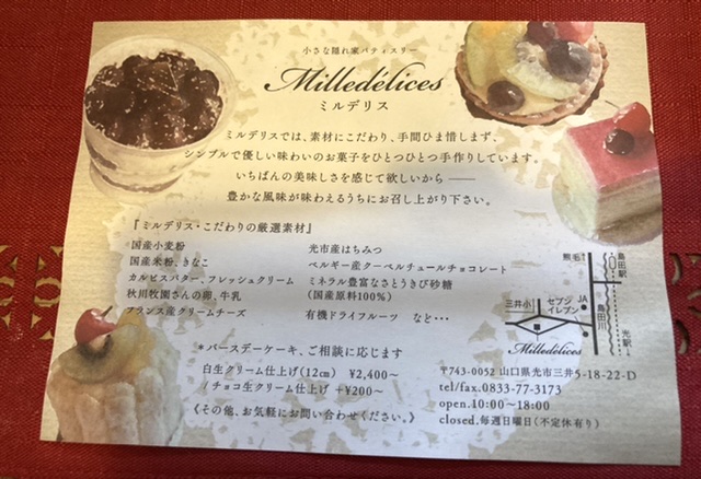 いかがでしたか?今回は光市の隠れ家パティスリー『ミルデリス』をご紹介しました!