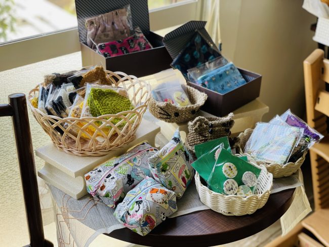 ハンドメイドコーナーにも猫をモチーフにした小物がいっぱい。