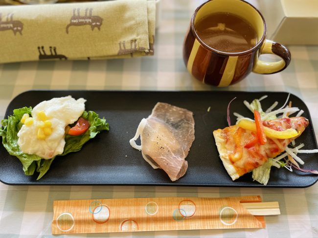 前菜【ポテトサラダ/生ハムと桃/ピザ】
