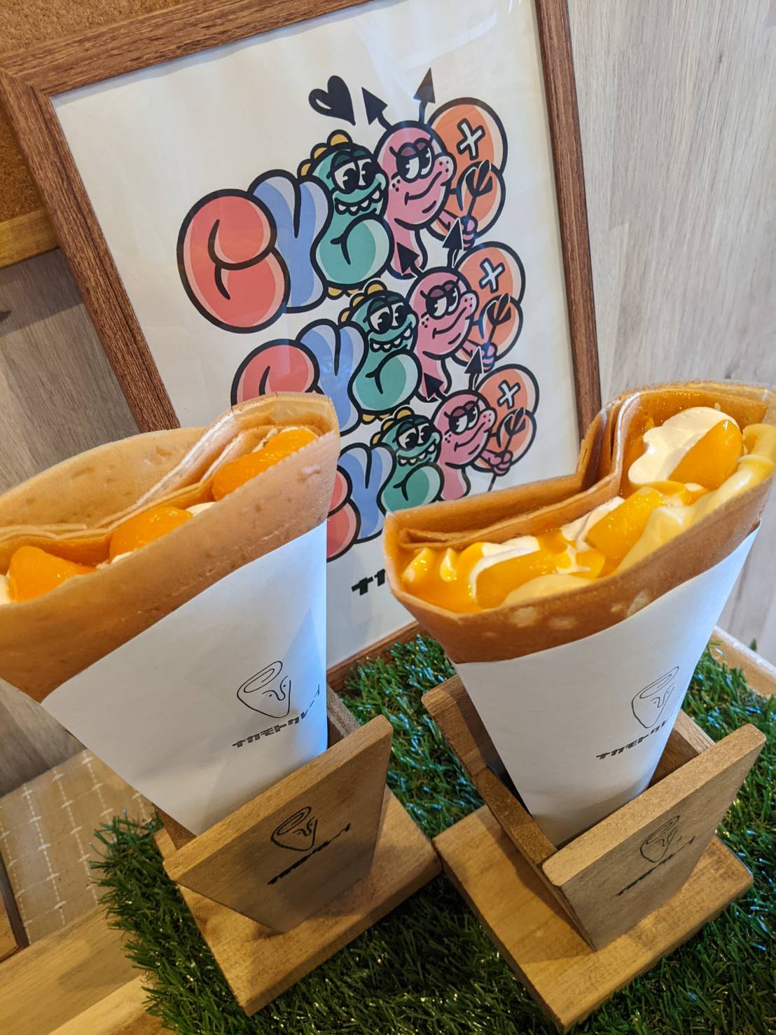 コーヒーと期間限定のマンゴーのクレープ、そしてみかんのクレープを頂きましたが、どれもボリュームたっぷりで大満足でした。