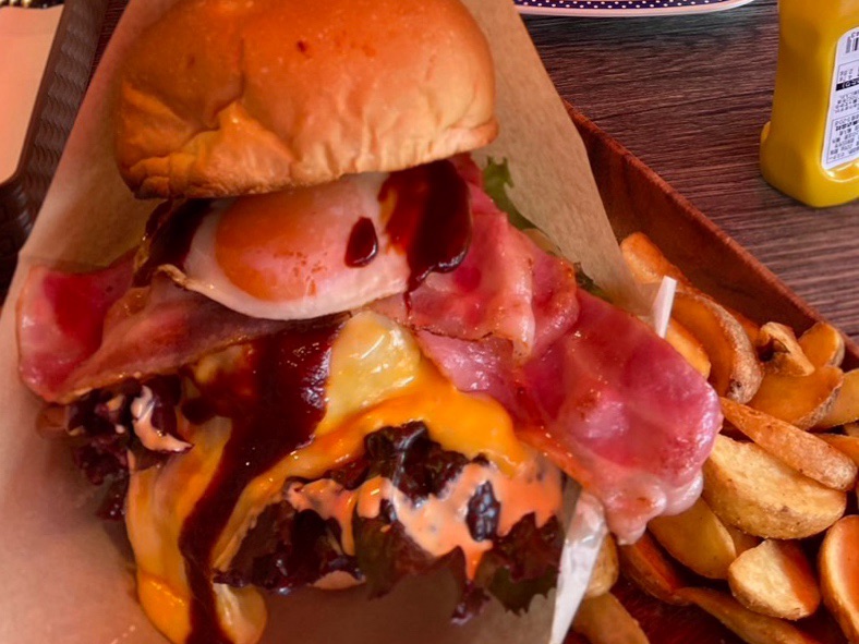 ハンバーガーのボリュームが凄く、アメリカンを感じさせる見た目にびっくり!!