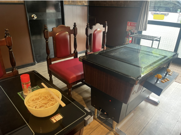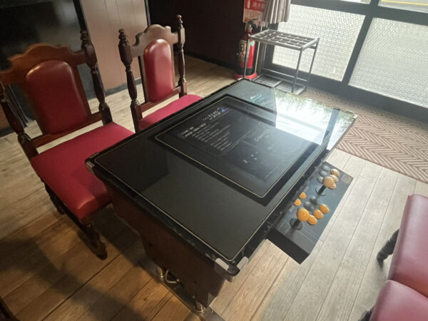 お店に入ると、まず目に飛び込んでくるのが インベーダーゲームやパックマンなどの、懐かしの卓上ゲーム機。