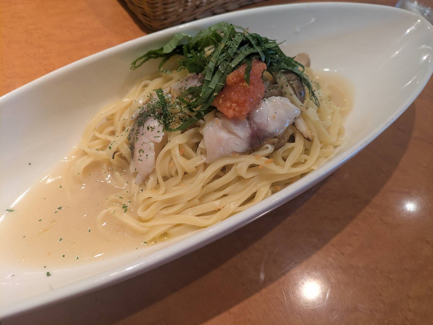 鯖と大葉と明太子のペペロンチーノ