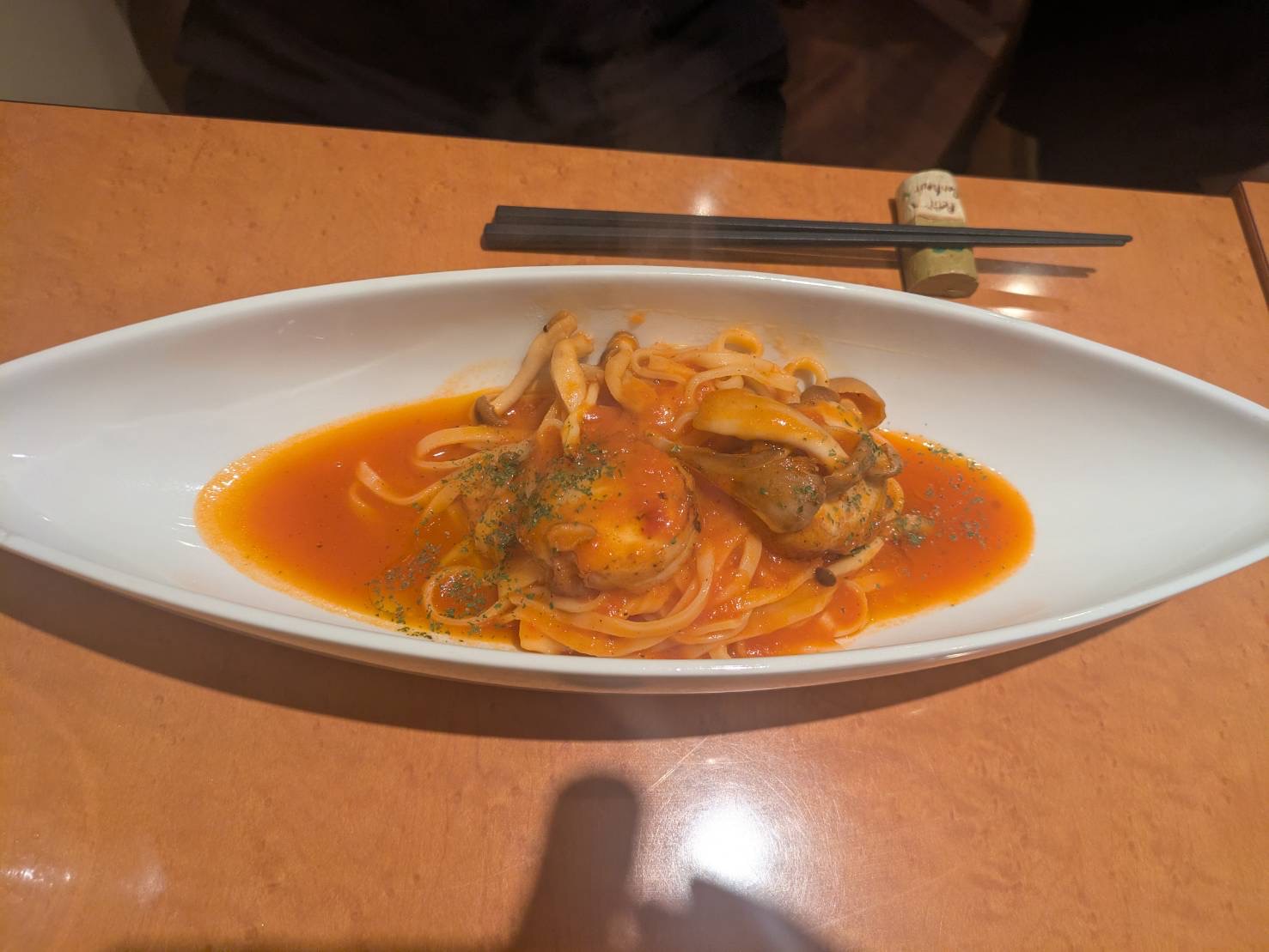 キノコとホタテのトマトパスタ