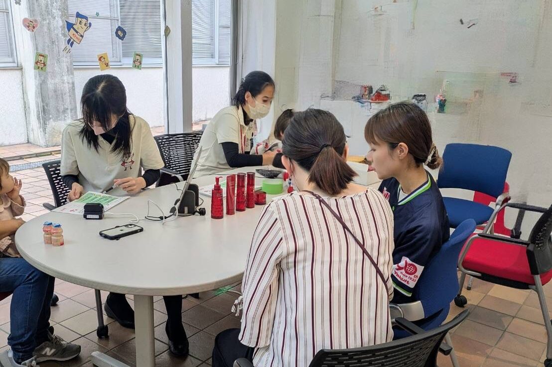 私達は肌測定を地域の方や保護者の方、学生さんに受けてもらい、お肌についてアドバイス等させて頂きました。たくさんの方とお話ができて楽しい1日でした!(^^)!