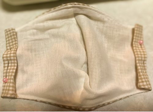 (手芸店の方に相談したら、ガーゼがない場合は表布はお好きなものにして、裏布は口に触れるから、できれば柔らかい素材のものがいいですね。と教えてくれました)