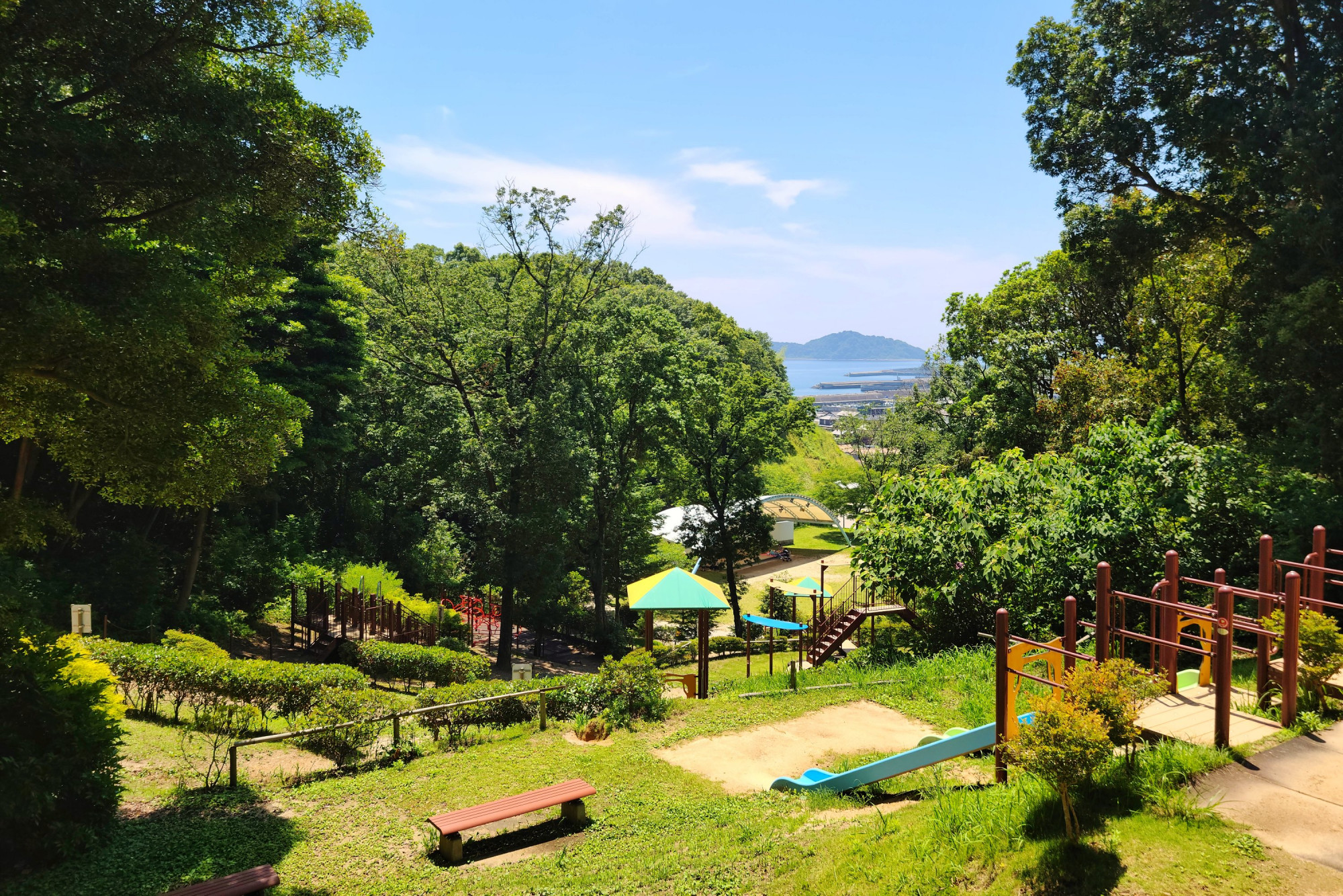 頂上の遊具からは遠くに海が見えて気分が晴れます。